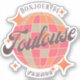 Toulouse France Retro Vintag Design mit einer Diskothek in Rosa und hellblauen Farbtönen auf gelbem Hintergrund. Dieser schöne Aufkleber ist ein perfektes Geschenk, Dekorgegenstand oder Souvenir für Toulouse Stadtbewohner, Besucher, Touristen oder Fans.