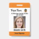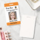 Passen Sie Ihr Tour Business Foto ID Abzeichen an. Alle Details können modifiziert oder entfernt werden. Foto, Firma, Logo, Name, Abteilung/Abteilung/Titel, Anschrift und E-Mail. Schwarzer Text auf weißem Hintergrund mit tropisch orangefarbenem Streifen oben und unten. Jedes Detail kann individuell angepasst werden.