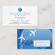 Stilvolle Visitenkarten mit weißen Flugzeugen rund um den blauen Globus. Ideal für Reisebüro, Tourismusfirma und Reiseführer. Einfach mit Ihren Informationen anpassen.