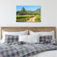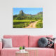 Leinwand Landschaftsbild eines touristischen Radfahrers auf einer Schotterstraße mit Rotui im Hintergrund auf der tropischen Insel Moorea, in der Nähe von Tahiti, in Französisch-Polynesien.