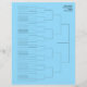 Tournament draw template paper print sheet for 64 players. Handy for sports like tennis, badminton, table tennis, pickleball, squash, padel and other racket sports and races. Blue or custom background color. Two sided print with extra elimination draw on the back. Personalized supplies for sports matches, scheduled games and official championship club events. Share this finals court planner with coaches, teams and players. Easy to hang up on a display board. Custom schedules for ranking opponents and seeded competitors in athletic contests.