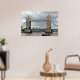 Tower Bridge und die Themse. Der Bau der Tower Bridge dauerte 8 Jahre, 5 große Bauunternehmer und die unablässige Arbeit von 432 Bauarbeitern. Die Tower Bridge war die größte und raffinierteste Baskulisse-Brücke, die je fertig gestellt wurde. Es wurde von Horace Jones, dem Stadtarchitekten, in Zusammenarbeit mit John Wolfe Barry entworfen. Tower Bridge, London, England