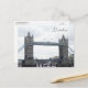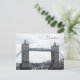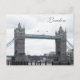 Blick auf die Tower Bridge auf der Themse mit dem Text "London" über der rechten Spalte der Brücke