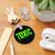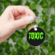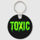 Giftig - schwarzer Schlüsselanhänger mit lebhaften gelb-grünen, tropfenden Schriftzeichen.