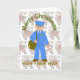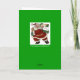 Diese Weihnachtskarte ist mit einem Spielzeug, das Postman auf einem Hintergrund von gekachelten Bildern des Weihnachtsmannes überlagert.