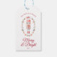 Add a touch of classic holiday charm to your presents with this elegant Christmas gift tag. Featuring a watercolor illustration of a traditional toy soldier framed by a festive wreath and the phrase “Merry & Bright”, it brings nostalgic warmth and timeless elegance to your gift wrapping. Perfect for labeling Christmas gifts, party favors, or holiday packages with style and tradition.