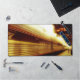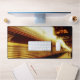 Im Originalfoto von ZoeSPEAK auf dieser Schreibtischmatte entlassen Fahrgäste aus der Ferne den Zug auf Track 2. Das helle Sonnenlicht trifft auf den glänzenden Metallzug, und ein Schild mit Datum und Uhrzeit kann unter dem Bahnsteig, mit der Erholung des Zuges und Bahnsteigs im Schatten, gesehen werden. Das Kunstwerk wurde in Goldtönen gemacht.