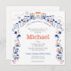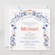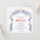 Mitzvah Tradition Bar Mitzvah Einladung, umgeben von Jerusalem Grenze in Gold und Blau zusammen mit dem Satz, wenn ich Jerusalem vergessen, ließ meine rechte Hand vergessen ihre List in Hebräisch, א ם א ש ח כ ך י ר ו