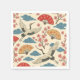 Elegant Japanese napkins featuring a traditional seamless pattern with graceful cranes, blooming sakura cherry blossoms, classic folding fans, and Seigaiha wave motifs.