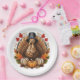 Celebrate Thanksgiving in style with this festive paper plate, designed to bring warmth and charm to your holiday table. The plate features a vibrant autumnal color palette, showcasing rich hues of orange, gold, and brown. At the center, a cheerful illustration of a classic Thanksgiving turkey is surrounded by fall leaves, pumpkins, and acorns, evoking the spirit of the season. Scalloped edges add a touch of elegance, while the sturdy construction ensures the plate can hold generous servings of your favorite Thanksgiving dishes. Perfect for family gatherings, potlucks, or school events, this Thanksgiving paper plate combines practicality and seasonal cheer, making every meal feel special.