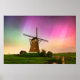 Poster print of a traditional windmill under a colorful sky with Northern Lights (aurora borealis) and stars at night in the countryside at Leidschendam in the Netherlands (Europe). It’s very rare for the weather phenomenon to be experienced this far south.