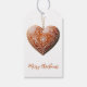 Traditionell dekorierte Weihnachtskochtetags. Dieses Weihnachtsschild hat eine bedruckte Textur eines weißen, verzierten Weihnachtskeks und frohen Weihnachtstext auf der Vorderseite und einen benutzerdefinierten Text auf der Rückseite.