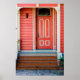 Traditionell rot gestrichene Holztür und -terrasse, Schloss, Vorderseite, Retro, Vintag, antike, Architektur, Hintergrund, schön, Gebäude, klassisch, geschlossen, Handwerkskunst, kunstvoll, Dekoration, Türöffnung, Fassade, Fassade, Kleider, Retro, Illustration,