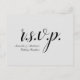 Dieses klassische und nostalgische R.S.V.P. Postkartendesign beinhaltet vorne die Meldung "r.s.v.p.", zusammen mit einem individuellen Event-/Veranstaltungsnamen. Es enthält auch ein benutzerdefiniertes UAWG auf der Rückseite, das der Empfänger ausfüllen kann, sowie eine benutzerdefinierte Adresse, an die die ausgefüllten RSVP-Karten gesendet werden sollen. RSVP-Karten wie diese können verwendet werden, um herauszufinden, wer an einer Babydusche, einem Polterabend, einem Hochzeitsempfang, einer Geburtstagsparty oder anderen Feiern teilnehmen wird.