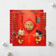 Festlicher traditioneller chinesischer Gruß mit Feuerrackern, Glücksknöpfen und schönen Wolken + goldenes Tiger Papier geschnitten mit Fu ideogramm in einen Kreis (Modell n°01) + zwei niedliche Kinder zu wünschen Happy New Year. Design auf quadratische Grußkarte mit dem gleichen Design in der Rückseite. Passende Standard-Grußkarte und roter Umschlag. Perfekt für das chinesische Neujahr des Tiger 2022. — "Der Tiger (寅) ist einer der 12-Jahres-Zyklen von Tieren, die im chinesischen Zodiakum im Zusammenhang mit dem chinesischen Kalender erscheinen. Das Jahr des Tigers wird mit dem Symbol 寅 der Irdischen Zweigniederlassung assoziiert. (..) Man kann sagen, dass Personen, die innerhalb dieser Zeitbereiche geboren sind, im "Jahr des Tigers" geboren waren, während sie auch das folgende Elementarzeichen trugen: 13. Februar 1926 - 1. Februar 1927 = Feuerjäger, 31. Januar 1938 - 18. Februar 1939 = Erdtiger, 1 50 - 5. Februar 1951 = Tiger aus Metall, 5. Februar 1962 - 24. Januar 1963 = Tiger, 23. Januar 1974 - 10. Februar 1975 = Tiger aus Holz, 9. Februar 1986 - 28. Januar 1987 = Tiger 28. Januar 1998 - 15. Februar 1999 = Earth Tiger, 14. Februar 2010 - 2. Februar 2011 = Metal Tiger, 1. Februar 2022 - 21. Januar 2023 = Water Tiger, 19. Februar 203 - 7 35 = Wood Tiger (...) Wikipedia