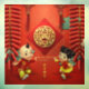 Feierliche traditionelle chinesische Gruß mit Feuerklappern, Glücksknöpfen und schönen Wolken + goldener Tigerkopf und Koï-Fische + Fu ideogramm Papier geschnitten in einen Kreis (Modell n°06) + zwei niedliche Kinder zu wünschen Happy New Year. Design auf Quadratgröße: 24" x 24", Stil: Teilweise transparentes Design. Passende Standard-Grußkarte und roter Umschlag. Perfekt für das chinesische Neujahr des Tiger 2022. — "Der Tiger (寅) ist einer der 12-Jahres-Zyklen von Tieren, die im chinesischen Zodiakum im Zusammenhang mit dem chinesischen Kalender erscheinen. Das Jahr des Tigers wird mit dem Symbol für die irdische Zweigniederlassung 寅. (..) Personen, die innerhalb dieser Zeitbereiche geboren sind, können als im "Jahr des Tigers" geboren bezeichnet werden, wobei auch das folgende Elementarzeichen angebracht wird: 13. Februar 1926 - 1. Februar 1927 = Feuerwehrmann, 31. Januar 1938 - 1 = Earth Tiger, 17. Februar 1950 - 5. Februar 1951 = Metal Tiger, 5. Februar 1962 - 24. Januar 1963 = Water Tiger, 23. Januar 1974 - 10. Februar 1975 = Wood Tiger, 9. Februar 1986 - 28. Januar 1987 = Tiger, 28. Januar 1998 - 15. Februar 1999 = Earth Tiger, 14. Februar 2010 - 2. Februar 2011 = Metal Tiger, 1. Februar 2022 - 21. Januar 2023 = Wassertiger, Februar 2034 - 7. Februar 2035 = Wood Tiger (...) Wikipedia