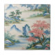 Diese Kachel ist ein klassisches chinoiserie Landschaftsdesign mit Bergen, Bäumen und Wasser in sanften, gedämpften Tönen. Das Design ist von traditioneller chinesischer Kunst inspiriert und würde eine schöne Ergänzung zu jeder Wohngestaltung darstellen. Die Kachel kann für verschiedene Zwecke verwendet werden, wie zum Beispiel für einen Untersetzer, Trivet oder dekorativen Akzent.