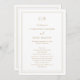 Klassisches Hochzeitsprogramm in elegantem Imitat Gold mit Ihren Monogrammen und Hochzeitsdetails, umgeben von einer doppelten Grenze. Die Schriftart- und Randfarben können durch Anklicken des Buttons "Anpassen" in eine beliebige Farbe geändert werden. Ein traditionelles Hochzeitsprogramm mit einem sauberen und zeitlosen Design, perfekt für eine formelle Hochzeit.