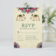 RSVP-Karte im indischen Stil mit eleganter Mandala-Kunst und wunderschön dekorierten Elefanten vor einem Vintagen Pergament-Hintergrund.