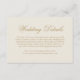 Traditionelle Hochzeitskarte mit dem Wort "Details" in einer eleganten Kalligraphie. Der gesamte Text ist in Imitaten goldfarben über einen neutralen Elfenbeinhintergrund und kann durch Anklicken des Buttons "Anpassen" auf eine beliebige Farbe geändert werden. Benutzen Sie diese Umzäunungskarten, um Anfahrtsbeschreibungen und andere wichtige Details zu den Hochzeiten anzugeben, die Ihre Gäste vielleicht kennen müssen, wie z.B. Hotelunterkünfte, Parkplätze, Informationen zum Shuttleservice, etc. Dieses klassische Design ist perfekt für eine formelle Hochzeit.
