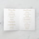 Klassische Imitate Gold gefaltet Hochzeitsprogramm mit Akzenten Wörtern in einer eleganten Kalligraphie Typografie. Die Vorderseite hat Ihre Veranstaltungsdetails, die Innenseite hat Ihre Hochzeitsfeier und die Reihenfolge der Zeremonie. Die Rückseite hat eine Vorlage für Ihre Nachricht / Anführungszeichen. Diese Hochzeitsprogramme sind perfekt für eine feierliche Hochzeit.
