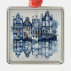 Blaue und weiße Delft-Häuser, die sich im Fluss widerspiegeln, mit blauen Bäumen und Flussdekoration für alle, die Delft Stil inspirierte Dekoration mögen. Es ist eine großartige Geschenkidee für Weihnachten, Geburtstage etc. und Sie können Ihre Zuhause mit diesem schönen, einzigartigen Design dekorieren.
