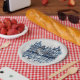 Traditionelle Häuser im Stil von Blau und Weiß Del Pappteller