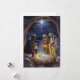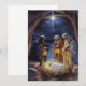 Teilen Sie die wahre Bedeutung von Weihnachten mit dieser atemberaubenden flachen Weihnachtskarte mit einer traditionellen Illustration einer Krippe. Dieses künstlerische Design zeigt die drei Weisen, die dem neugeborenen Baby in der Krippe unter einem strahlenden Stern von Bethlehem in einem friedlichen, rustikalen Stall Geschenke darbringen. Die tiefen Farben, der sternklare Nachthimmel und das dramatische Licht schaffen ein ehrfürchtiges, bewegendes und zeitloses Bild. Diese Karte ist eine elegante und bedeutungsvolle Möglichkeit, Weihnachtsgrüße und Wünsche für Frieden und Freude in dieser Jahreszeit zu übermitteln.