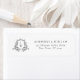 Diese klassischen Monogram Wappen Floral Elegant Wedding Rücksendeadressen-Aufkleber in klassisch Schwarz und Weiß verfügen über ein elegantes Vintages botanisches Monogramm Wappen mit zarten Weinreben und Blumenakzenten.