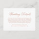 Traditionelle Hochzeitskarte mit dem Wort "Details" in einer eleganten Kalligraphie. Alle Texte sind in Imitate Rose Gold über einen weißen Hintergrund und können in jede gewünschte Farbe geändert werden, indem Sie auf die Schaltfläche "Anpassen" klicken. Benutzen Sie diese Umzäunungskarten, um Anfahrtsbeschreibungen und andere wichtige Details zu den Hochzeiten anzugeben, die Ihre Gäste vielleicht kennen müssen, wie z.B. Hotelunterkünfte, Parkplätze, Informationen zum Shuttleservice, etc. Dieses klassische Design ist perfekt für eine formelle Hochzeit.
