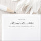 Formelle Hochzeitsstipps mit einem schlichten und klassischen Design mit den Worten: "The Future Mr. and Mrs.", mit Ihrem Namen in einer eleganten schwarzen Kalligraphie und einer Textzeile für Ihre Rücksendeadresse in einem serifenlosen Schriftart, auf weißem Hintergrund. Dieses elegante Design eignet sich perfekt für eine Hochzeit mit schwarzer Krawatte und eignet sich hervorragend, um Ihren Hüllkurven eine persönliche Touch hinzuzufügen.