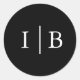 Elegante und klassische Hochzeitsaufkleber mit einem schlichten Design, das Ihre beiden ersten Monogramme mit einer Linie in einem weißen Serif-Schriftart über einem schwarzen Hintergrund enthält. Die Schriftart- und Hintergrundfarben können in beliebig viele Farben geändert werden. Ein schlichtes und einfaches Design, das immer noch als elegant erscheint. Diese minimalistischen Stilaufkleber machen großartige Umschlag Aufkleber.