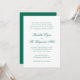 Klassische Hochzeitseinladungen mit einem einfachen Design mit den Namen von Braut und Bräutigam in eleganter Kalligraphie und traditioneller Formulierung in einem Juwel-Ton smaragdgrün über einem weißen Hintergrund. Die Vorlage hat Felder für zwei Gastgeber aufgelistet werden, sodass es ideal, wenn die Eltern der Braut nicht mehr verheiratet sind und beide Gastgeber der Hochzeit sind. Dieses klassische Design ist perfekt für eine formelle Hochzeit.