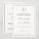 Einfache Einladung zum Hochzeitsfeiern mit dem Monogramm in einem Kreis oben und Ihren Hochzeitsdetails, umgeben von einer dünnen Grenze. Ihre Namen befinden sich in einem handgeschriebenen, eleganten Schriftart. Alle Designelemente sind Terrakotta- / gebrannte Orange- / Rosterdtöne über einem weißen Hintergrund und können im Designbearbeitungstool geändert werden. Das klassische, traditionelle Layout macht diese Einladung zu einer feierlichen Hochzeit.