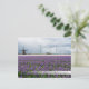 Postkarte einer Landschaft mit einer traditionellen Windmühle und mehreren modernen Windmühlen, um grüne Energie hinter einem Feld mit lila Hyazinth-Blume in der Bulb Region in Holland mit einer verblassenden Bar und dem Text zu erzeugen: Holland.