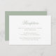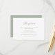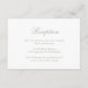 Traditionelle Hochzeitskarte mit dem Titel "Empfang" in Kalligrafie und Ihre Veranstaltungsdetails unten. Alle Texte sind grün auf weißem Hintergrund und können durch Anklicken des Buttons "Anpassen" in eine beliebige Farbe geändert werden. Diese Karten sind eine perfekte Ergänzung zu Ihrer Suite, wenn Ihr Empfang an einem anderen Ort als Ihrer Zeremonie gehalten wird. Dieses klassische Design ist perfekt für eine formelle Hochzeit.