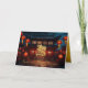 Ein chinesischer Tempel in der Nacht mit traditionellen Laternen als Hintergrund für einen goldenen Drachen mit ideogramm Papier-Schnitt, 2024 (anpassbar) und golden "Jahr des Drachen". Design auf Grußkarte. Passend zum rechteckigen Aufkleber.