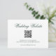 Traditionelle Hochzeitskarte mit "Wedding Website" in eleganter Kalligrafie und QR Code. Der gesamte Text ist grün über einem weißen Hintergrund und kann durch Anklicken des Buttons "Anpassen" auf eine beliebige Farbe geändert werden. Dieses klassische Design ist perfekt für eine formelle Hochzeit.