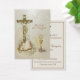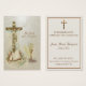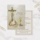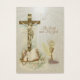 Personalisieren Sie diese schöne traditionelle katholische Erste Heilige Kommunion Erinnerungskarte mit dem Crucifix, Heiligen Geist, Bibel, Chalice und Host. Alle Texte und Schriftart können geändert werden. Wir bieten auch Koordinierungskarten und Einladungen an.