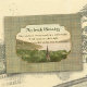 Weiche grüne und goldene karierte Hintergrundfarbe mit einem mittelgroßen Label mit einem historischen Bild von Carlingford Lough aus dem Jahr 1900, Landkreis Down mit irischem Segen im keltischen Stil.