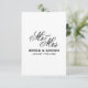 Klassische Schrift Mr. & Mrs. Traditionelle Designvorlage für zusätzliche Informationen wie Website-Adresse. Ideal für die traditionelle Ehe zu jeder Jahreszeit. Zeitlos schwarz-weiß Typografie Design. Vertikales Layout.