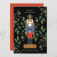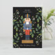 Original Illustration eines klassischen Nussknacksoldaten mit heiligen und mistletoe im Hintergrund. Optionaler Platzhalter im Foto auf der Rückseite.