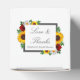 Das Design besticht durch elegante Sonnenblumen, Rose und Gänseblumen mit einer goldgelben, roten und weißen Farbpalette. Das Design verfügt auch über einen kohlegrauen Rahmen. Sie können die Hintergrundfarbe auf der Vorderseite und zurück in die gewünschte Farbe ändern oder beide Set in Weiß verlassen werden.