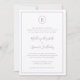 Einfache Einladung zum Hochzeitsfeiern mit dem Monogramm in einem Kreis oben und Ihren Hochzeitsdetails, umgeben von einer dünnen Grenze. Ihre Namen befinden sich in einem handgeschriebenen, eleganten Schriftart. Alle Designelemente sind staubig lila / lila / violett auf weißem Hintergrund und können im Designbearbeitungstool geändert werden. Das klassische, traditionelle Layout macht diese Einladung zu einer feierlichen Hochzeit.