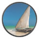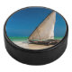 Traditionelles Fischerboot am Strand Eishockey Puck