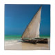 Traditionelles Fischerboot am Strand Fliese
