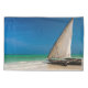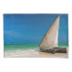 Traditionelles Fischerboot an einem weißen Sandstrand in Sansibar, Tansania.