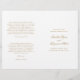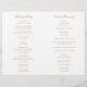 Traditionelles gefaltetes Hochzeitsprogramm mit einem einfachen Design mit Ihren Namen und den Headern in einer eleganten Kalligraphie. Die Vorderseite hat Ihre Veranstaltungsdetails, die Innenseite hat Ihre Hochzeitsfeier und die Reihenfolge der Zeremonie. Die Rückseite hat eine Vorlage für Ihre Nachricht / Anführungszeichen. Dieses klassische Gold-Weiß-Design ist perfekt für eine feierliche Hochzeit. Diese billigen Hochzeitsprogramme werden auf Papierbögen gedruckt, um eine preisgünstige Option zu erhalten.