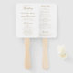 Klassischer Hochzeitshandfan mit Akzenten in eleganter Kalligraphie-Typografie. Alle Texte sind in Imitaten goldfarben auf weißem Hintergrund und können durch Anklicken des Buttons "Anpassen" in beliebig viele Farben geändert werden. Diese Handfans für das Hochzeitsprogramm sind perfekt für eine feierliche Hochzeit.