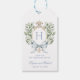 Das elegante Aquarellmonogramm-Wappen verleiht diesem Hochzeitsschild einen wunderschönen und zeitlosen Look, den jede raffinierte Braut zur Liebe haben wird. Personalisieren Sie dieses Tag mit Ihrem Initial im Wappen. Die Farben sind hellblau, grün, goldgelb und braun.